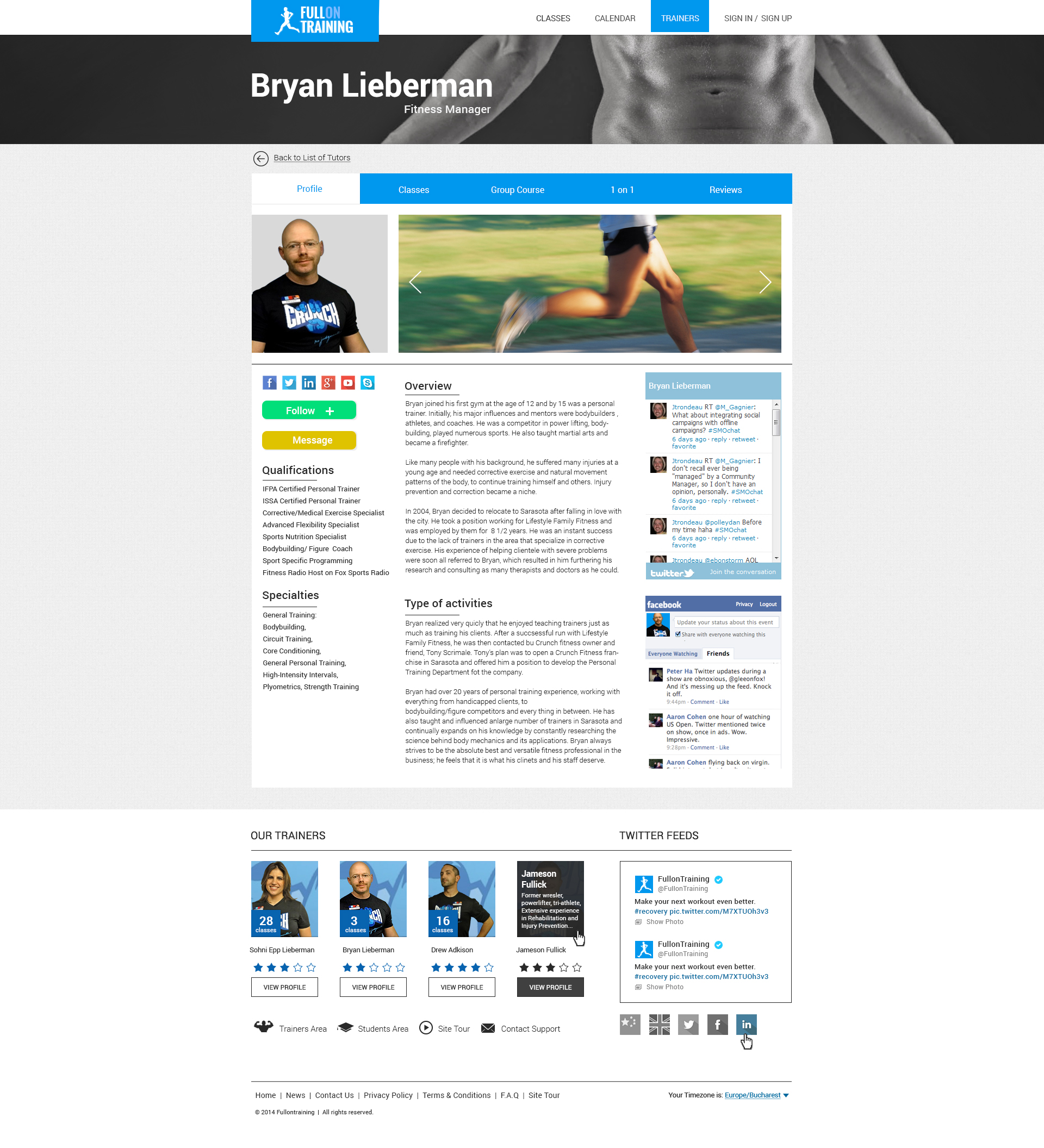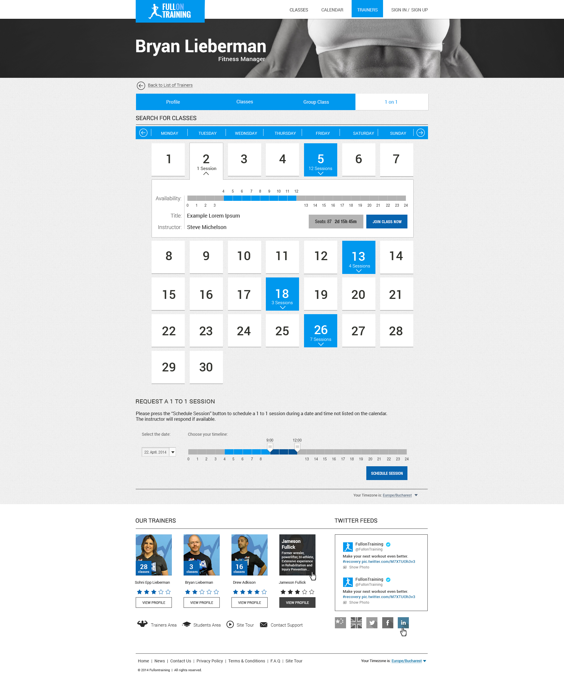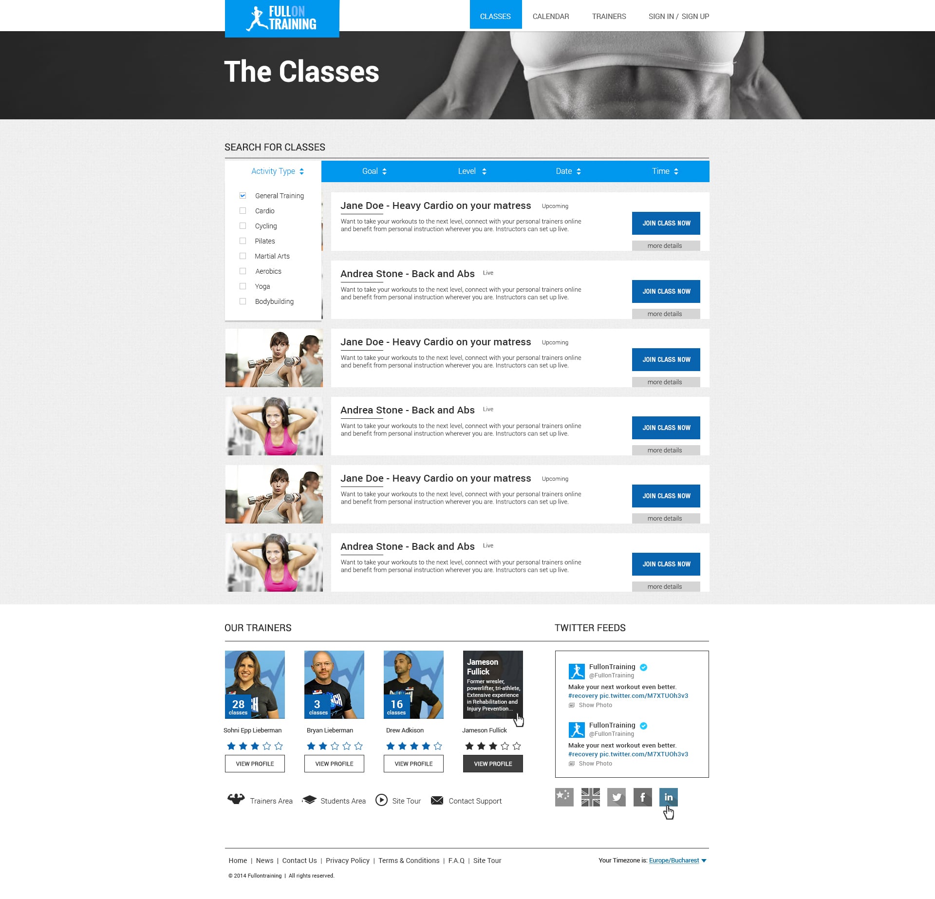 Fitness website and web application, based on live and recorded fitness sessions, for a single user, or a group. This app uses wowza video streaming engine and an advanced billing system.