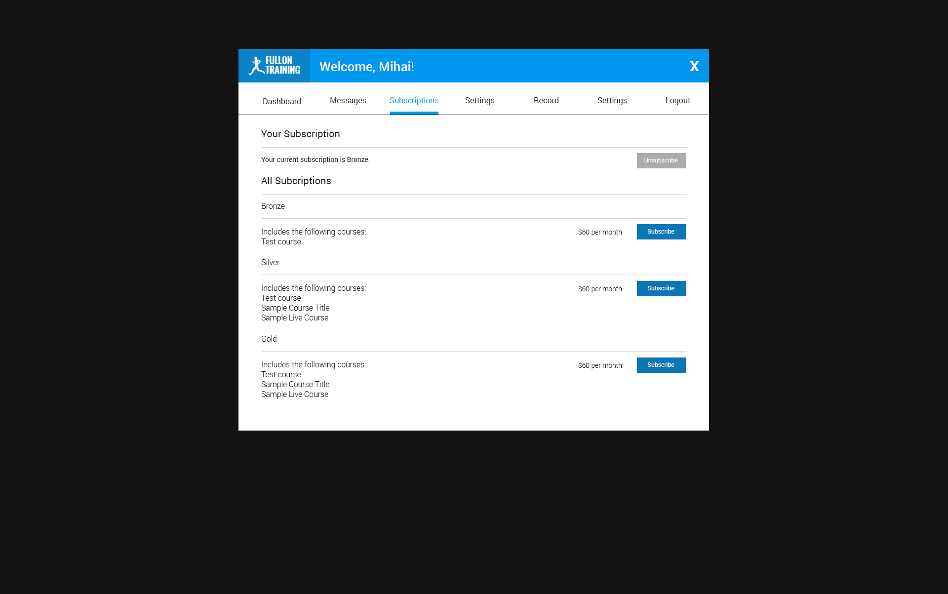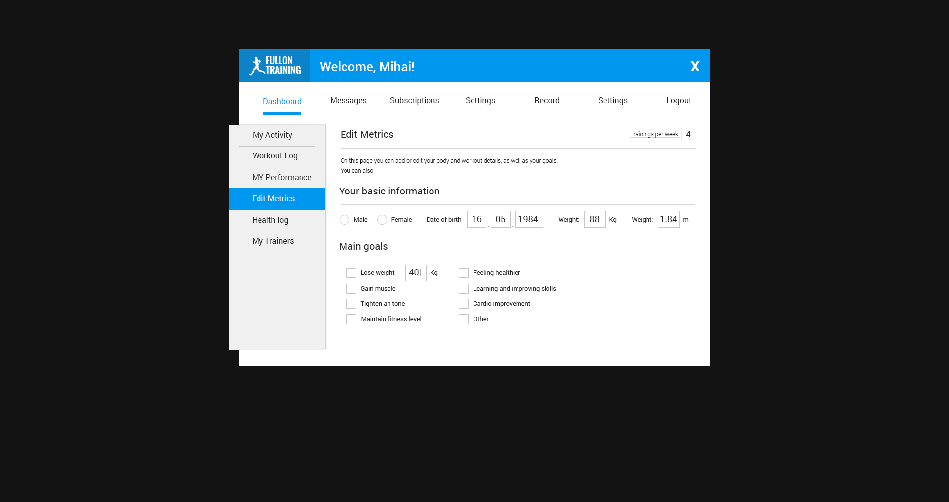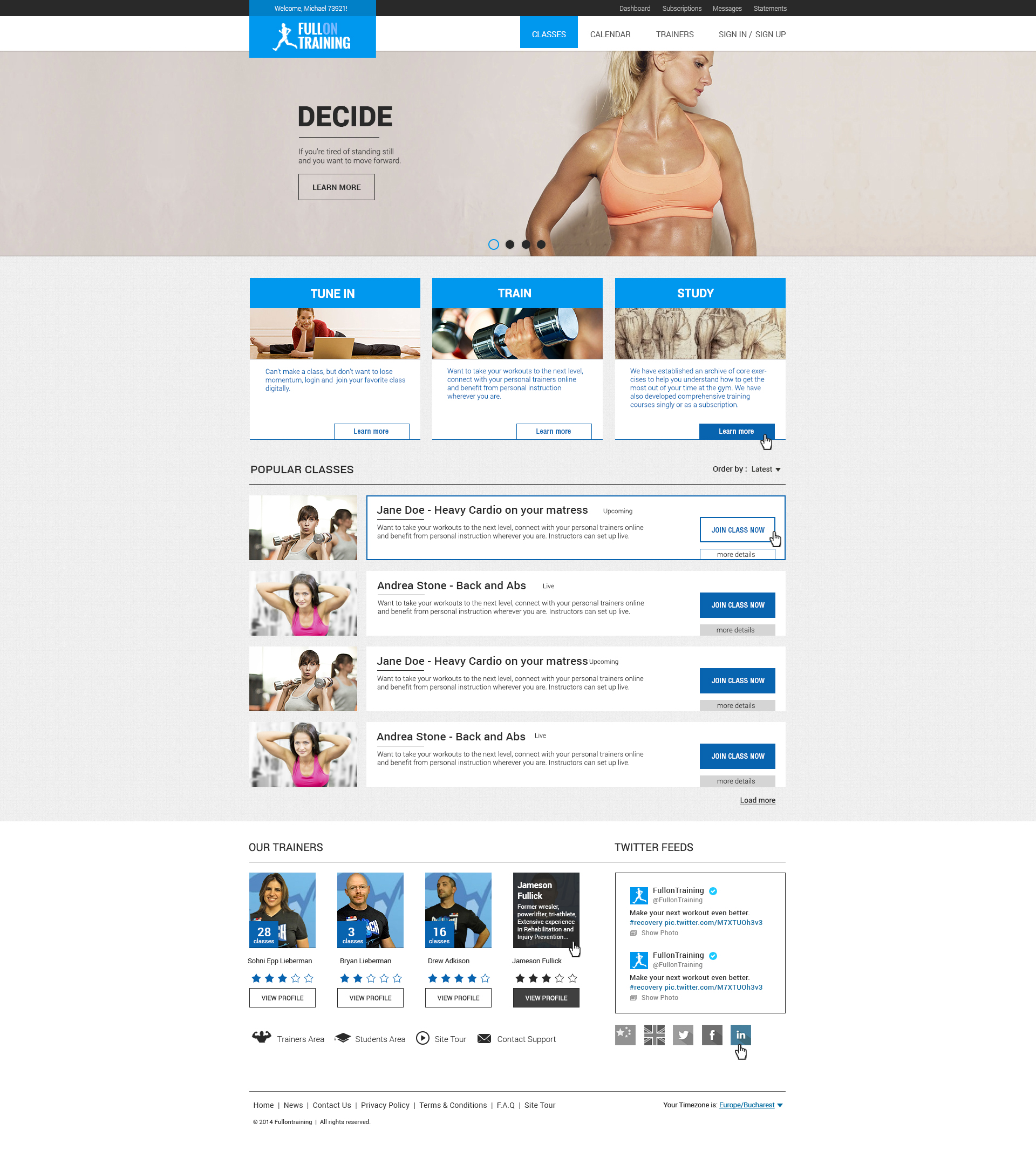 Fitness website and web application, based on live and recorded fitness sessions, for a single user, or a group. This app uses wowza video streaming engine and an advanced billing system.